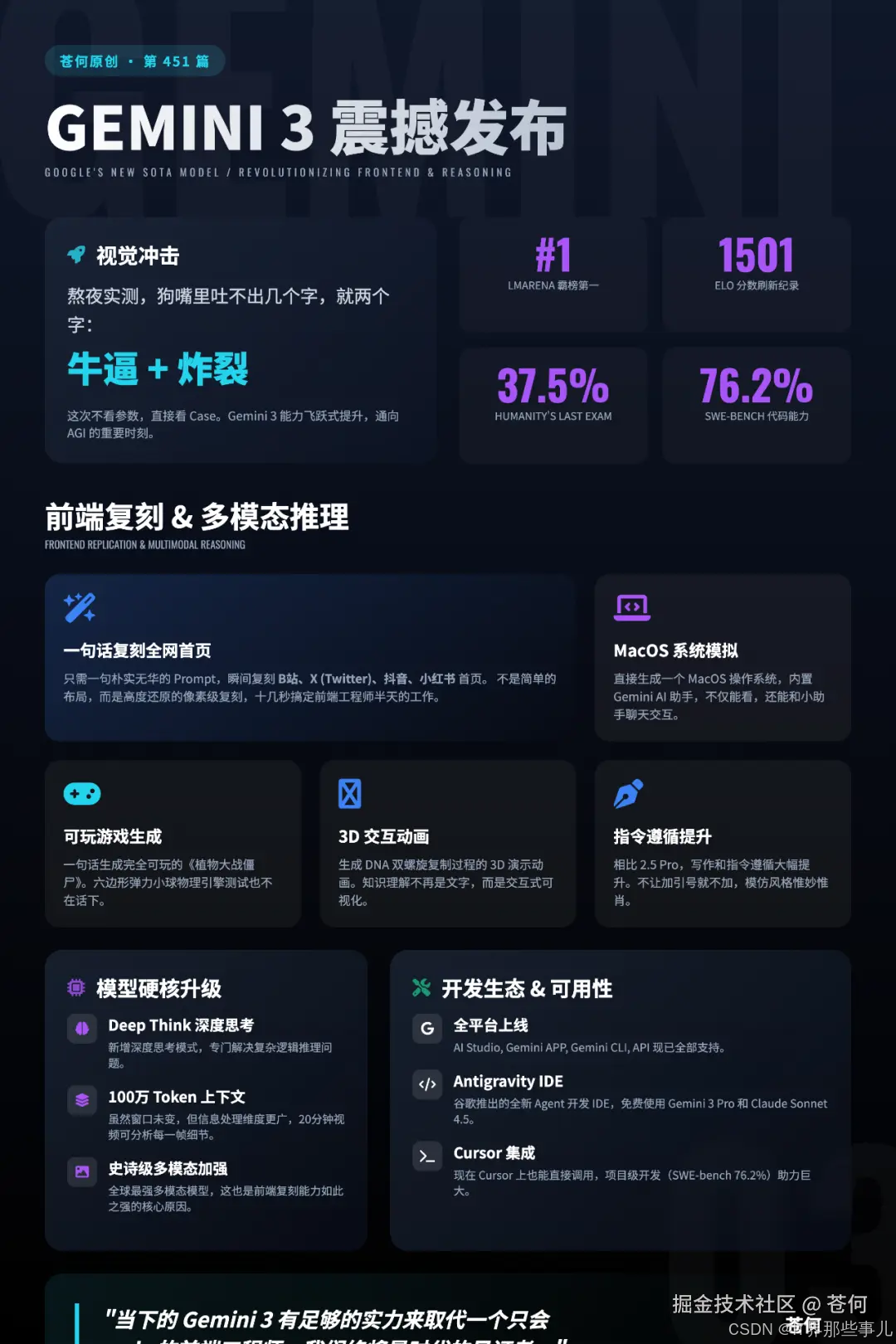 原文:Gemini3 强势来袭,这次前端真的死了。。。这是苍何的第 451篇原创! 大家好,我是苍何。 Gemini3 终于还 - 掘金