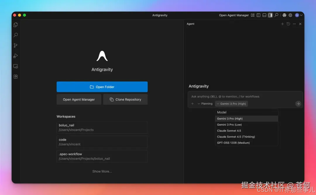 这次谷歌还推出了Agent 开发 IDE,叫 Antigravity,可以免费使用 Gemini3 Pro、Claude Sonnet 4.5。