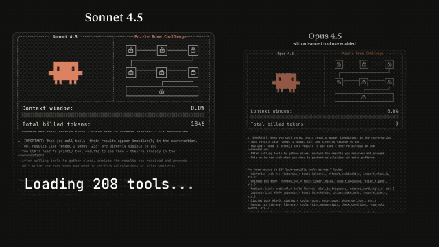 内部测试显示,启用 Tool Search Tool 后,Opus 4 在 MCP 测试中的准确度从 49% 提升到 74%,Opus 4.5 从 79.5% 提升到 88.1%。