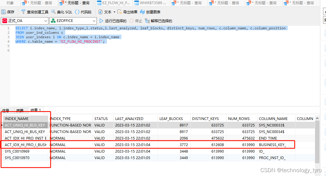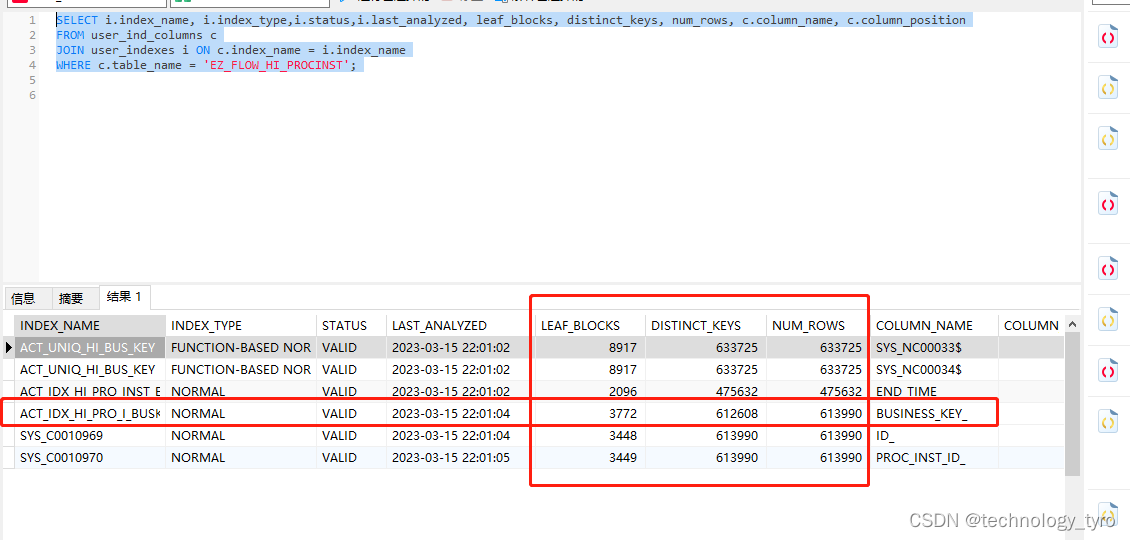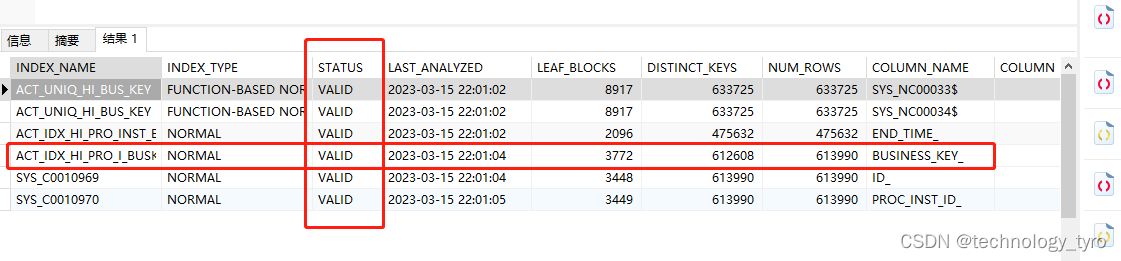 status:状态为“INVALID”,则该索引已失效。状态为“VALID”,则该索引未失效。