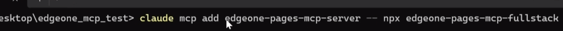 开发完成,并且项目在我本地运行起来了。接下来我们借助MCP工具,让AI帮助我们把这个项目全自动部署上去。输入这个命令,在Claude Code里面先安装一下MCP。注意,后面的npm包要使用这个fullstack,也就是全栈版本的。