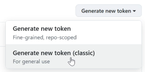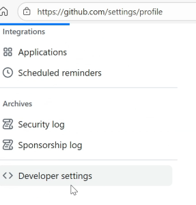 接下来我们来到配置文件,再把API Key添加上。我们来到GitHub右上角settings,左边找到Developer settings -> generate new TOKEN,
