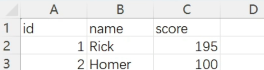我准备了一个CSV文件的测试数据,这里面存储的是学生的学号名字,还有分数。