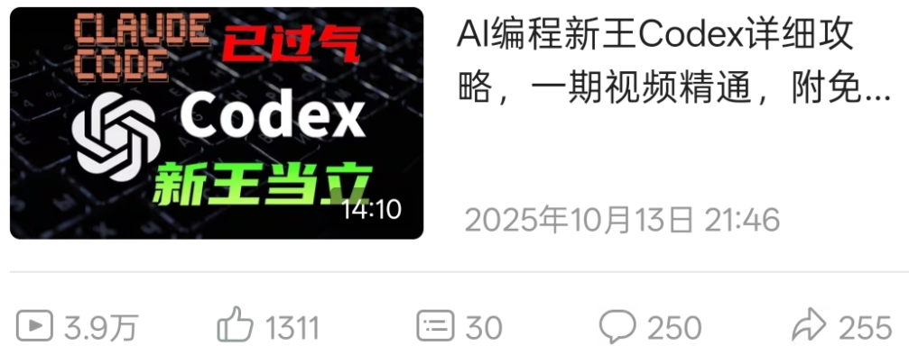 接下来我们来看另外一个AI编程工具Codex怎么配置MCP。我这个电脑上已经安装过Codex了,有关Codex怎么安装配置,在这期视频里面有过详细介绍了。https://www.bilibili.com/video/BV1wm4UzfEbr