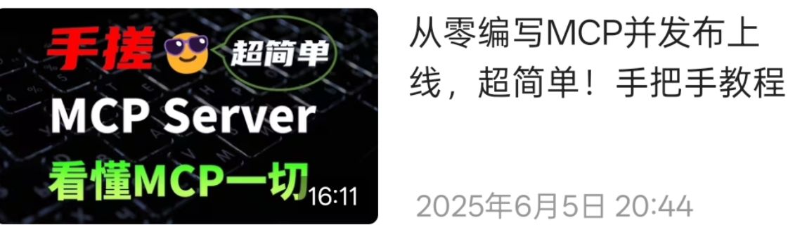 我们可以使用这些SDK创建属于我们自己的MCP Server。别人的写的再好,终究不如自己的好用。如果有什么想法,我们可以选择自己喜爱的编程语言创建属于自己的MCP Server。在这期视频里面,我详细介绍了如何使用Python SDK来创建一个属于自己的MCP Server,感兴趣的观众朋友们可以去看一下。https://www.bilibili.com/video/BV1RNTtzMENj