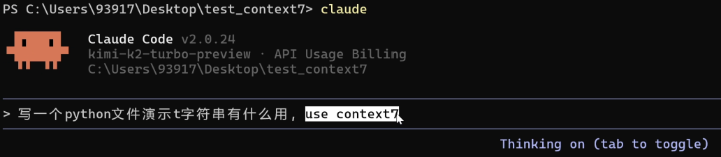 后面的API Key可以不用填(如果调用量不大)。这样回车,配置完成。启动一下claude。我们来看一个例子,Python 3.14于25年10月7日发布,这里面有一个新特性叫做模板字符串,也叫做t-字符串。