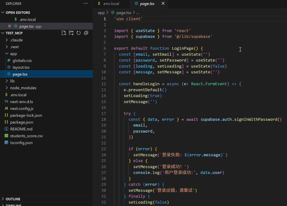 我让AI用nextjs写一个项目,利用Supabase自带的用户鉴权功能,实现用户登录,代码写完了。