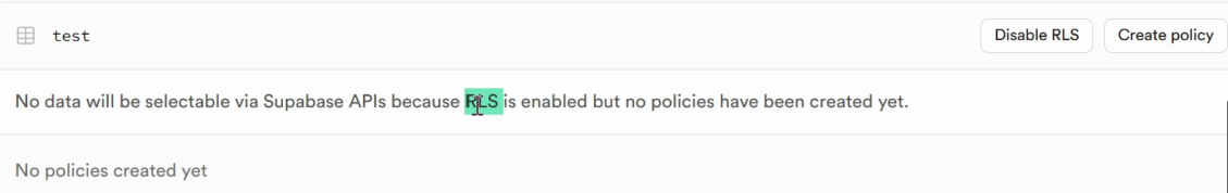 ADD RLS Policy。这里写了通过supabase API现在没有一行数据能被查询到,因为行级安全策略还没有配置,也就是没有配过RLS的表,通过SDK是完全查询不到的。