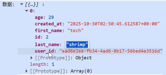 刷新一下页面,我们看到数据被查询出来了,用户的年龄,他的名字都被查询出来了。