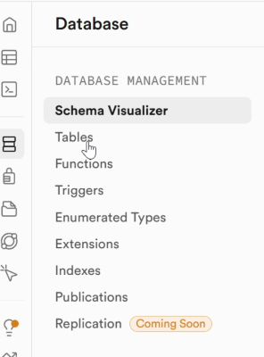 这里有postgres的所有的基础功能:schema, 表, 函数, 触发器, 枚举, 插件, 索引。publications是一个实时监控,可以把表的修改信息以Websocket的形式推送出去,这个我们等下再看。我之前有两期完整视频,详细介绍过postgres这个数据库,还有它的一些进阶使用技巧,数据库的基础功能我就不再赘述了。