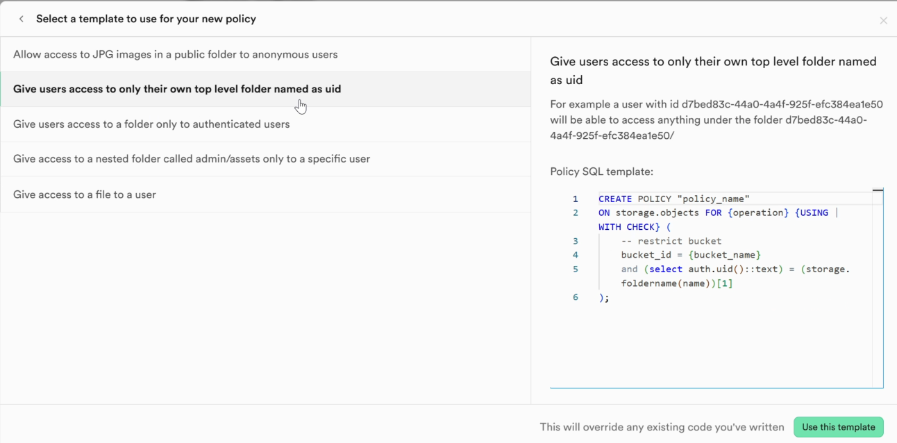 同样的存储桶也可以配置它的安全措施,使用Supabase SDK直接在前端对存储桶进行操作。