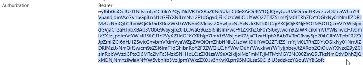 我们看到这个请求里面最重要的部分,是在header里面的authentication里面,有一个bearer里面的JWT TOKEN,这个TOKEN也就是当前登录用户的令牌,只有这个令牌跟后面的行级安全策略匹配起来,才能查询到数据。