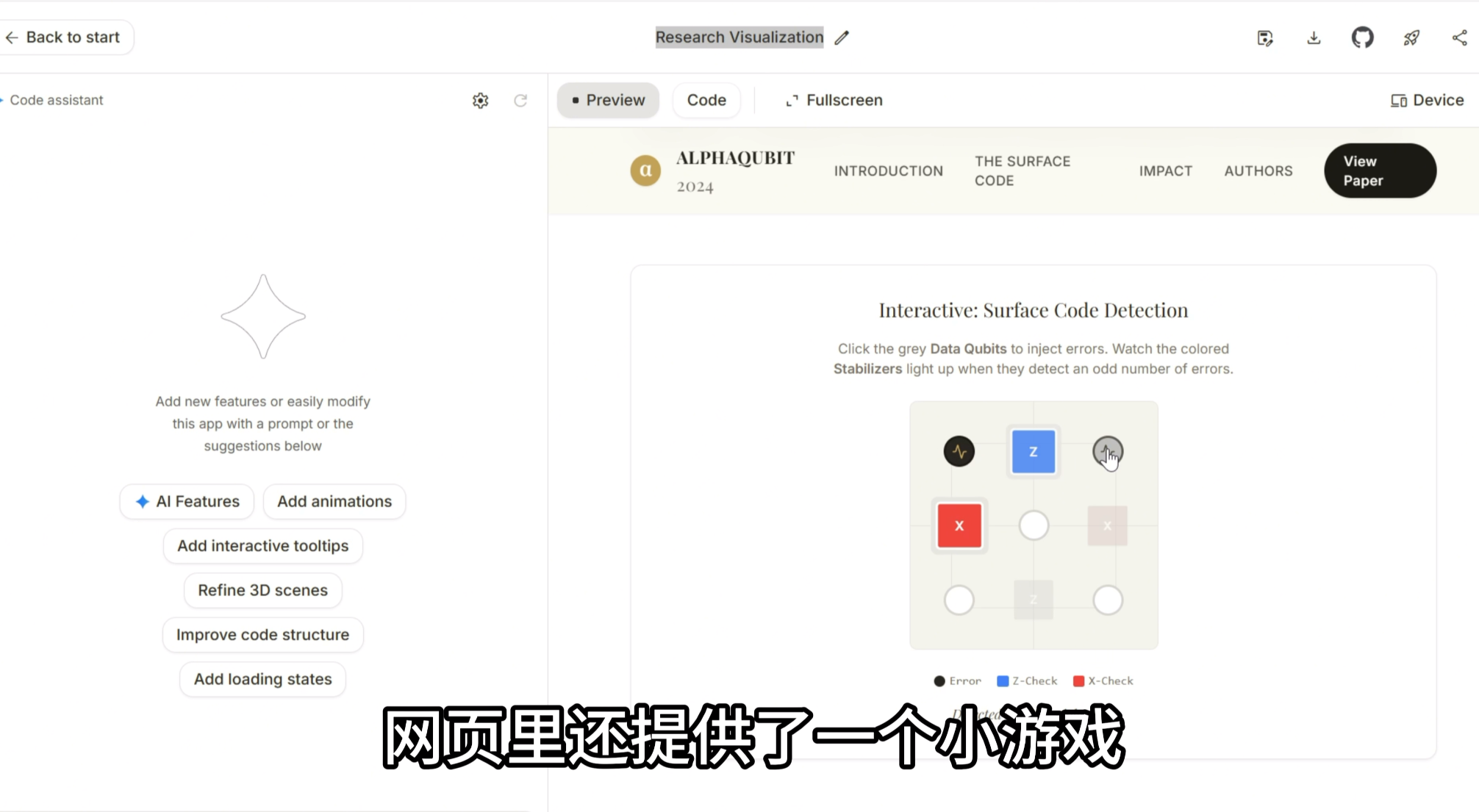 Gemini 3把一个真实的量子计算相关的论文,转换成了一个精美的网页。网页里还提供了一个小游戏,用来可视化的展示这篇论文的核心理论。