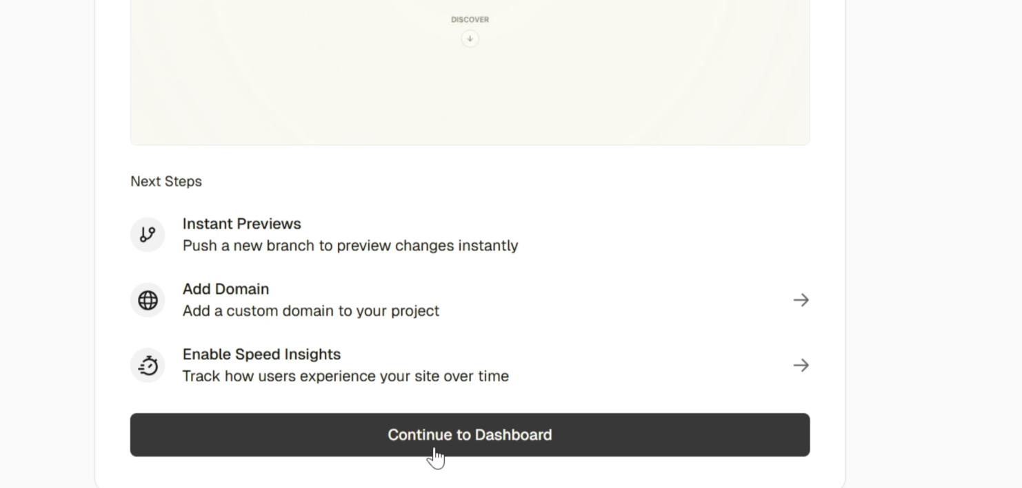 这里要注意一下,Vercel给的这个域名在国内是没法直连的。我们可以点击项目,这里“return to dashboard”,
