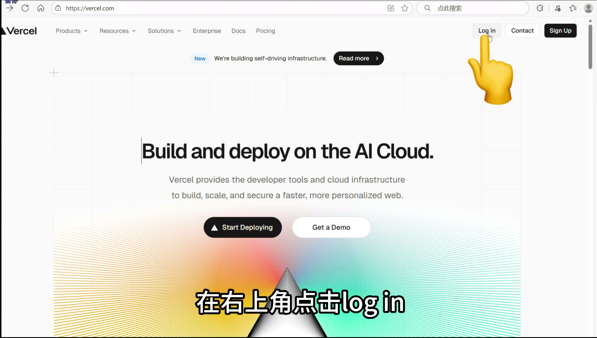 接下来,我们来到第一个免费的部署平台,也就是vercel。 https://vercel.com ,在右上角点击“log in”,这里一定要选择使用GitHub登录。