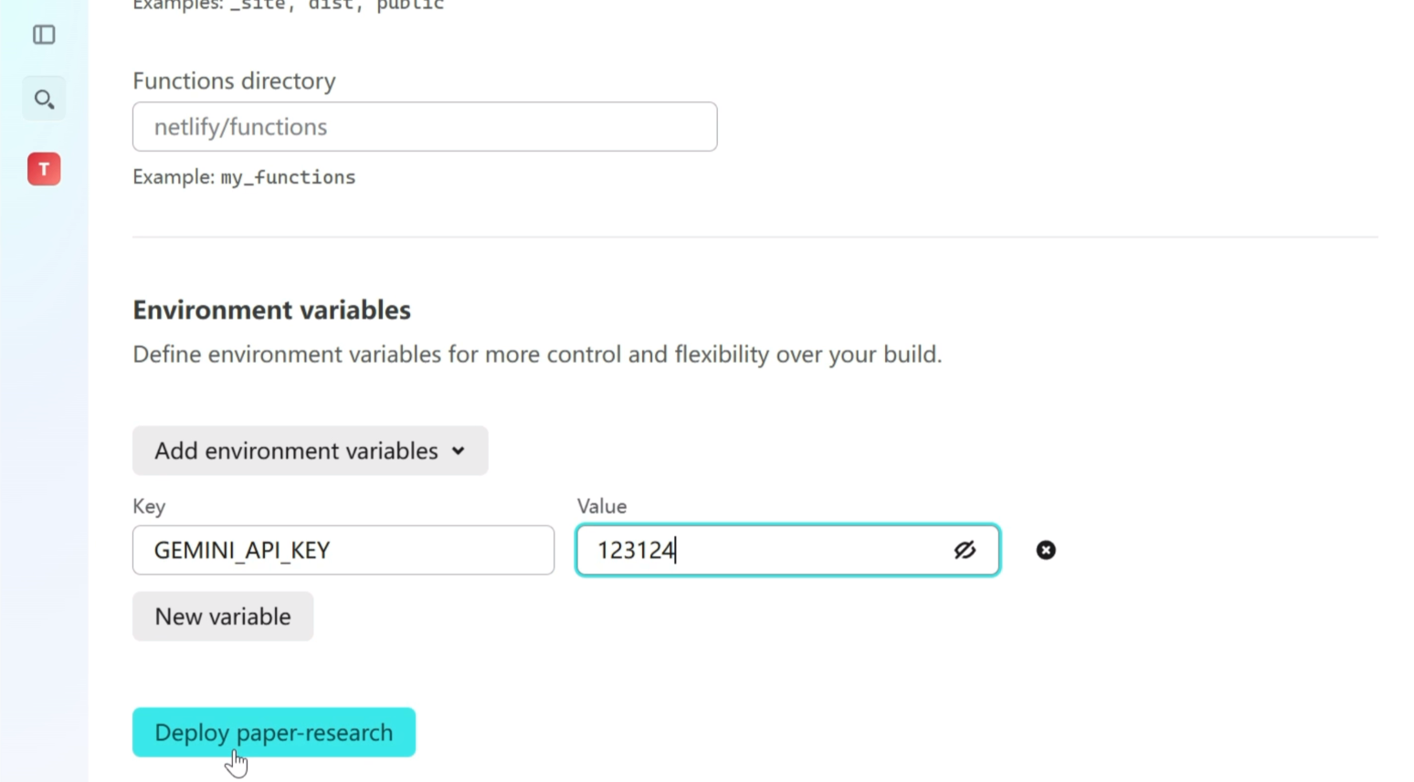 下面这些配置都不用改,记得在下面添加环境变量,名字还是GEMINI_API_KEY,value随便填,然后点击部署。