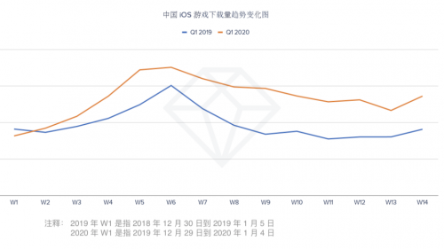 App Annie向TechWeb提供的一份图表显示,今年一季度中国iOS端游戏的下载量明显高于去年同期。易观互动娱乐行业分析师董振向TechWeb表示,第一季度包含游戏在内的整体线上娱乐领域都有较大幅度的增长,其中游戏市场规模预计超过500亿元,可以说是创历史新高。