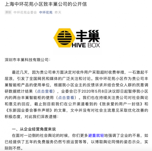 前两天,一封上海中环花苑业委会的公开信,将丰巢怼的哑口无言,更是引来很多网友的阵阵叫好声。只是,喧嚣过后,依然没有改变丰巢收费的事实。