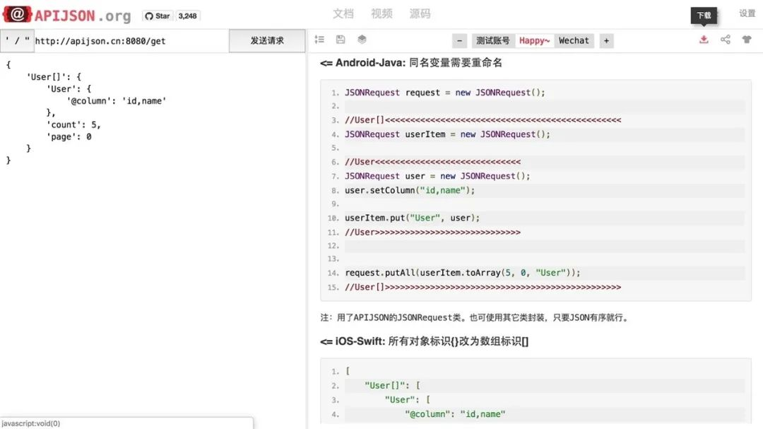 APIJSON接口展示