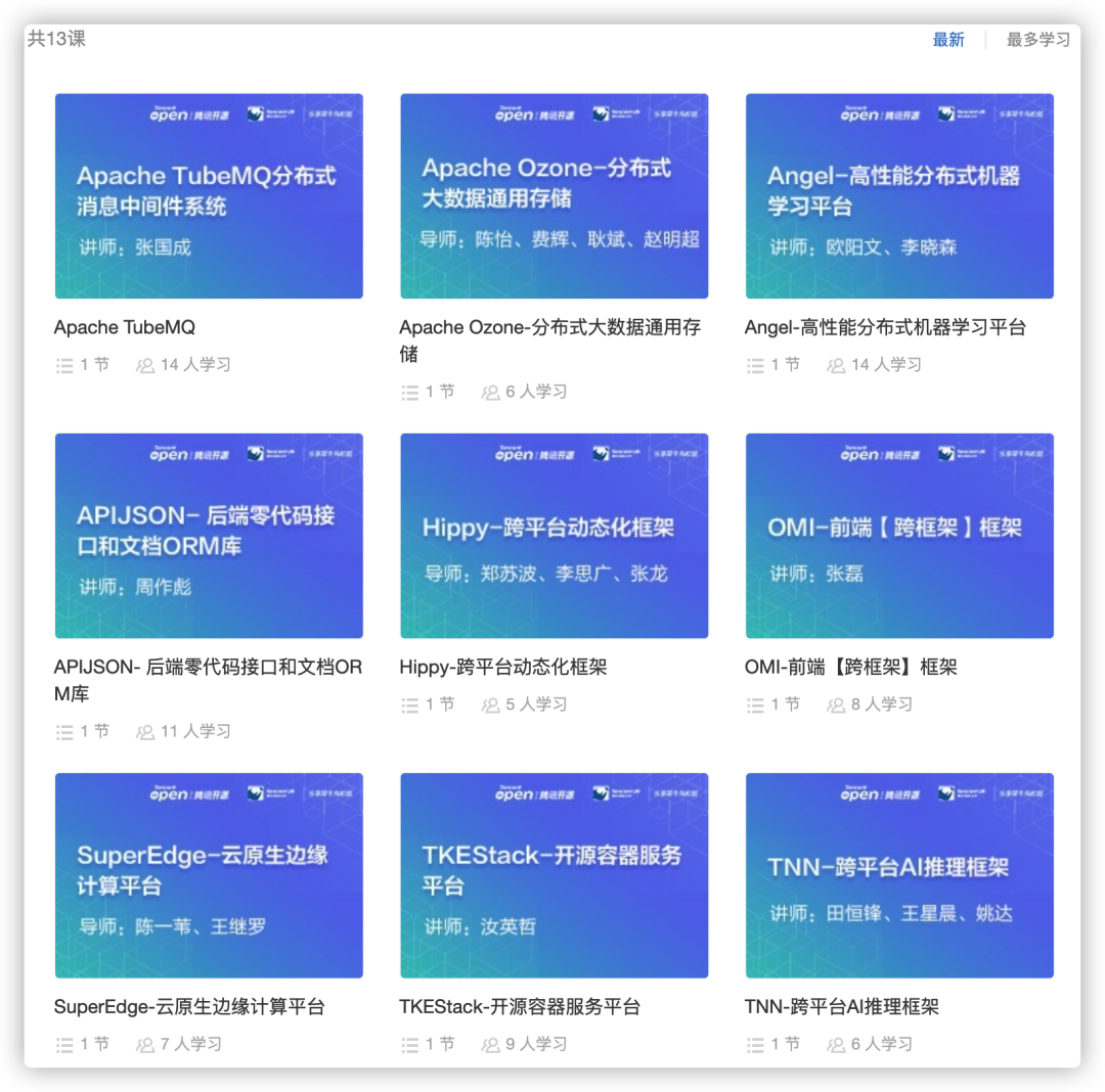 为了方便同学了解学习本次13个开源项目,提交实战申请书。我们也邀请到各开源项目的核心负责人,作为本次培养计划的导师。同时,导师团们还亲自录制了开源项目系列介绍课程,帮助大家迅速了解项目情况:
