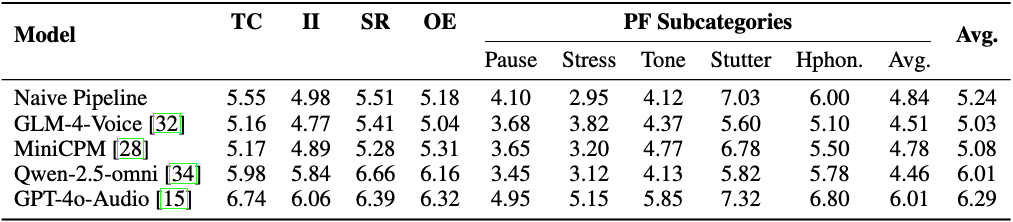 ● GPT-4o-Audio 虽以 6.29 分(满分 10 分)领先,但在停顿、重音区分等场景仍有提升空间;