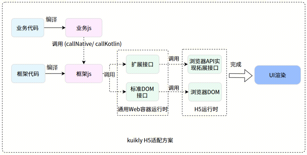 浏览器提供了标准的DOM,Window,Document。Kuikly适配H5时只需实现动画,滚动列表,文本测量等少部分 Web容器运行时拓展接口。