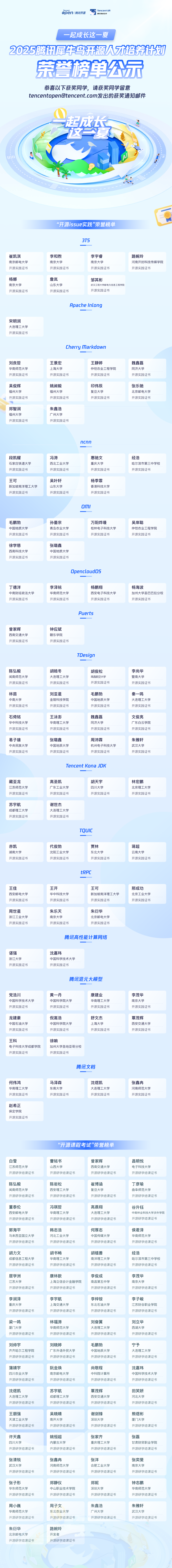 2025年腾讯犀牛鸟开源人才培养计划聚焦15个明星开源项目进行开源学习和项目实战,带领2300+高校学子及开发者积极参与开源实战课题学习。