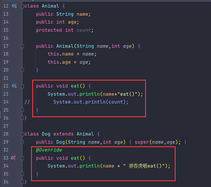 animal1.eat()实际调用了父类的方法, 而animal2.eat()实际调用了子类的方法.