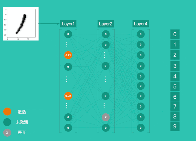 Dropout 解决过度拟合的办法之一,就是随机丢弃一部神经元。Demo 中就是使用 Dropout 随机丢弃 20% 神经元。