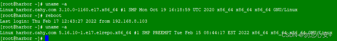 yum --enablerepo=elrepo-kernel install kernel-ml -y&& sed -i s/saved/0/g /etc/default/grub&& grub2-mkconfig -o /boot/grub2/grub.cfg && reboot