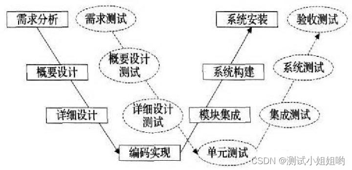 如图所示,V模型中的过程从左到右,描述了基本的开发过程和测试行为。