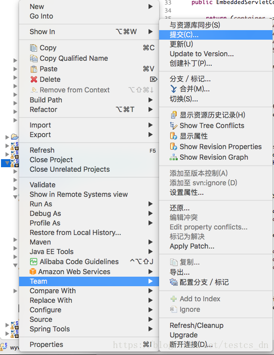 6、提交代码,在项目名称上,点击鼠标右键,选择Team》提交(C)…