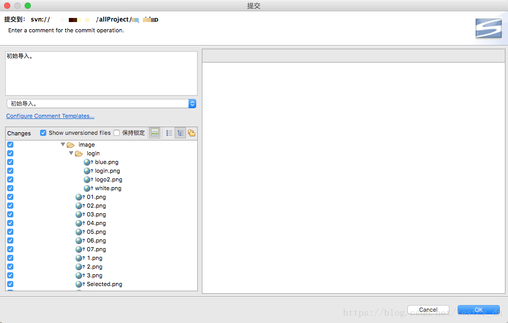 输入注释,选择需要提交的文件,对于一个项目来说有些文件是不需要提交的。