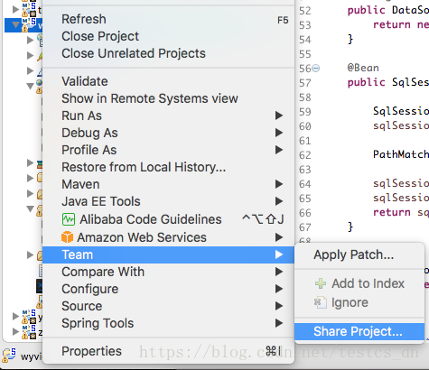 1、在项目浏览器中的对应项目名称上,点击鼠标右键,选择Team》Share Project……
