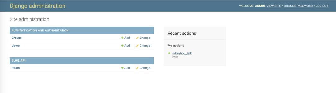 浏览器输入 localhost:8000/admin,并使用刚刚创建的账户登陆。