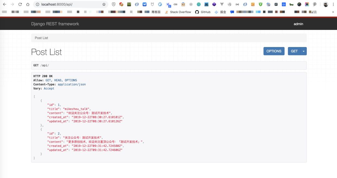到此,我们已经完成了Django部分,由于我们本篇示例,是为了创建一个API服务,所以我们不需要创建模板和视图。相反,我们还需要继续添加Django Rest库来处理将模型数据转换为Rest API。