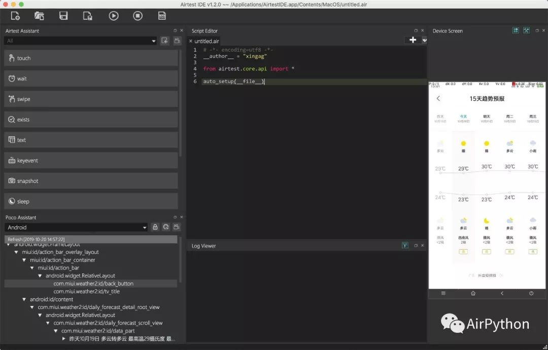 Airtest 上手难易度低,高效方便,结合 Python 脚本,可以完成一些自动化的操作,也可以快速开发出一款 App 端的爬虫。