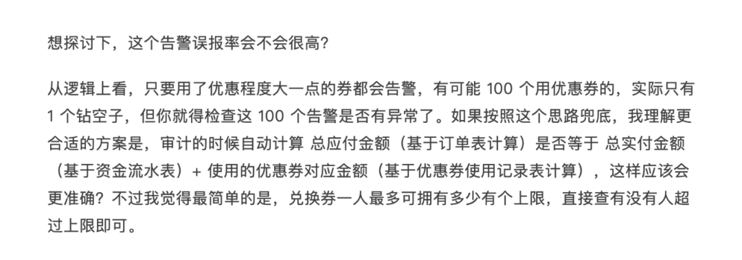 如果金额还不够物料成本 * 系数 ( 系数可以自定义),就自动拦截订单,并告警;然后测试端,把这个场景加进去,加到下订单的用例集里面去,后面所有上线的什么券,优惠,全部参考场景测试一遍,看看后台会不会生成异常拦截告警 From 汉学堂