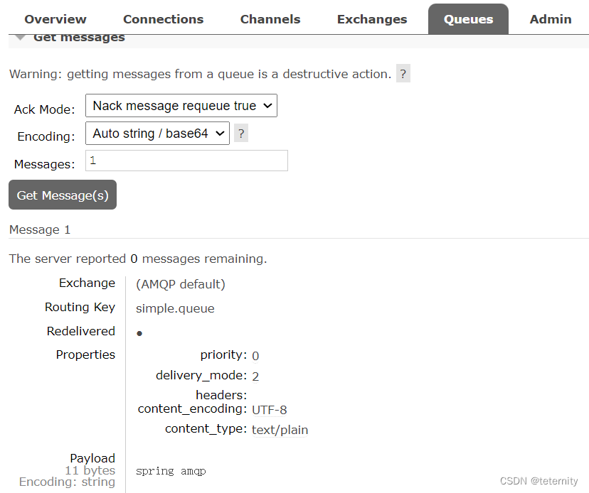 然后可以运行测试代码,成功发送,并且可在管理界面看到所发送的消息