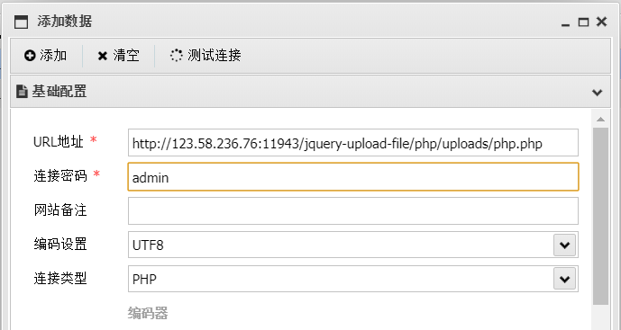 3. 木马文件上传之后,直接利用蚁箭进行连接。这一步重要的就是要找到上传的木马文件的存储目录。