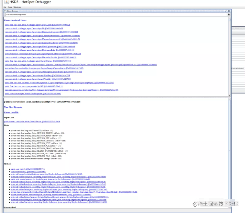 所以为了可以检测Agent马需要从sa-jdi.jar本身入手,想办法dump得到当前字节码(这样不止可以分析被修改了字节码的Agent马也可以分析普通类型的内存马)