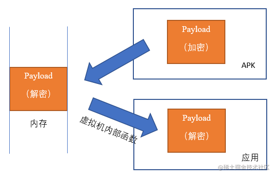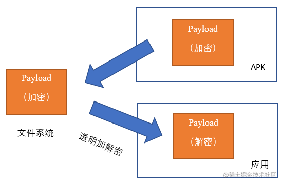 1)关键逻辑(Payload)以加密的方式存储在APK中。