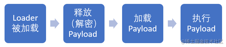 2)运行时加载部分(Loader)将关键逻辑释(Payload)放到内存。