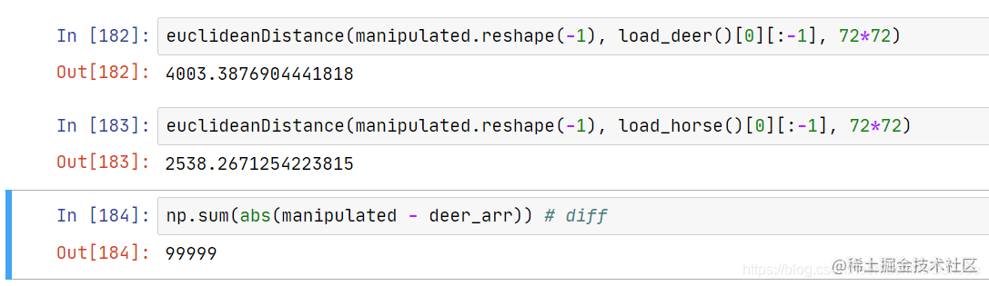 我们现在的目标就是在 deer 的基础上进行小幅度修改,使得它与 horse 之间的的欧氏距离小于其与 deer 的。