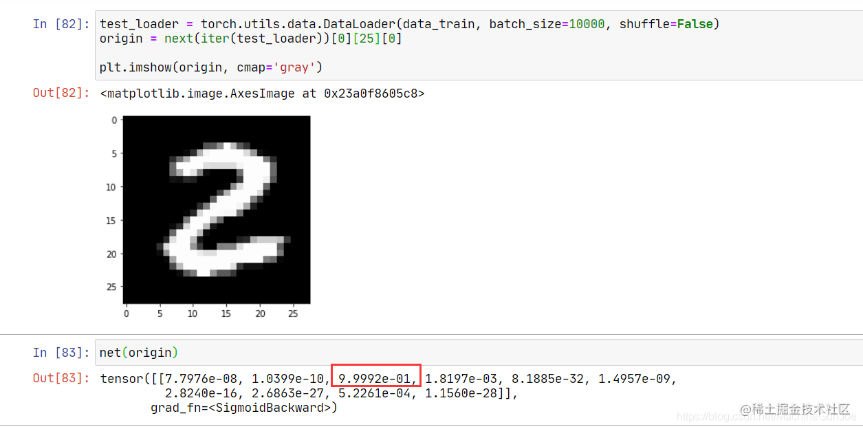 def test(net):net.eval()test_loader = torch.utils.data.DataLoader(data_train, batch_size=10000, shuffle=False)test_data = next(iter(test_loader))with torch.no_grad():x, y = test_data[0], test_data[1]outputs = net(x)pred = torch.max(outputs, 1)[1]print(f'test acc: {sum(pred == y)} / {y.shape[0]}')net.train()