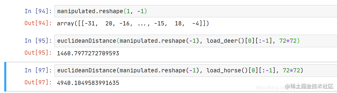 2.求选手图片与 deer 和 horse 的欧几里得距离。离谁更近,就判定为哪个分类。