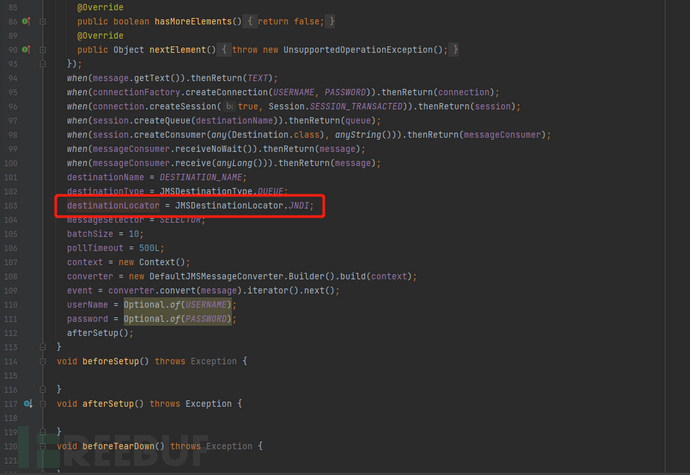 destinationLocator的定义是在JMSMessageConsumerTestBase.java中。