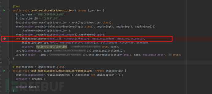 首先在TestJMSMessageConsumer#testCreateDurableSubscription 初始化了