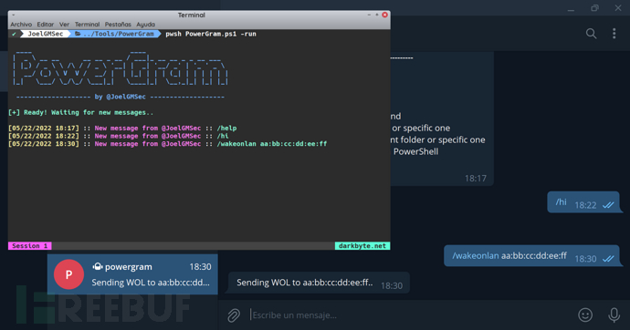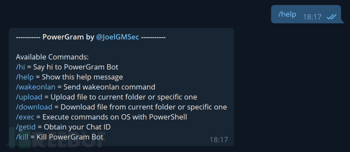 PowerGram是一个基于PowerShell的TelegramBot工具,可在Windows、Linux和macOS上运行。它通过HTTPS加密通信,但使用GET请求,可能易受拦截。用户需要PowerShell4.0或更高版本以及ChatID和BotToken来运行。工具支持命令如获取聊天ID、显示帮助、WOL、文件上传下载和远程执行代码。