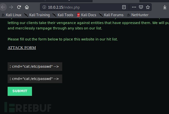 继续找可以利用的信息,发现http://10.0.2.15/index.php